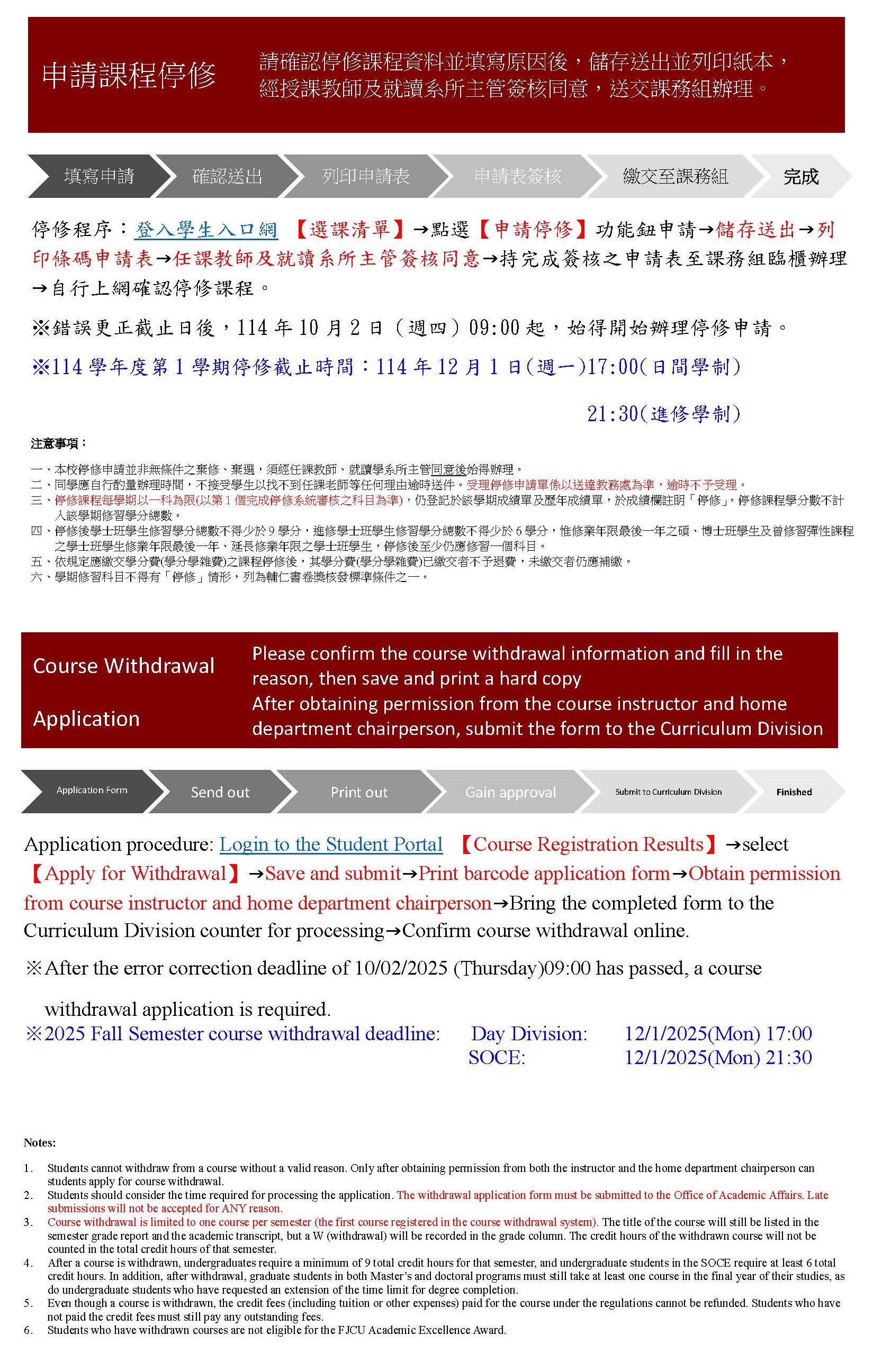 【課務】114-1停修截止時間:114年12月1日週一 17:00(日)、21:30(進)